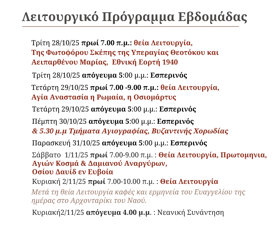 Πρόγραμμα Εβδομάδας : 27 Οκτ ~ 2 Νοεμ 2025