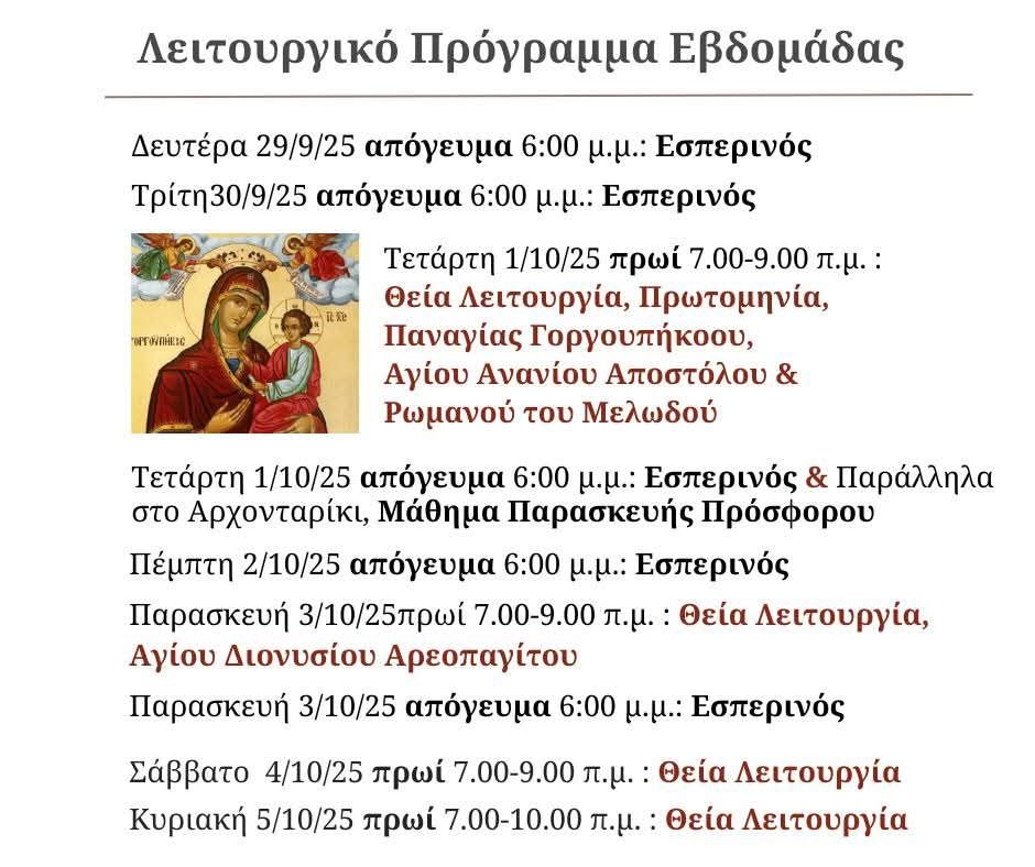 Από Ιερός Ναός Αγίου Γεωργίου / 29 Σεπτεμβρίου, 2025